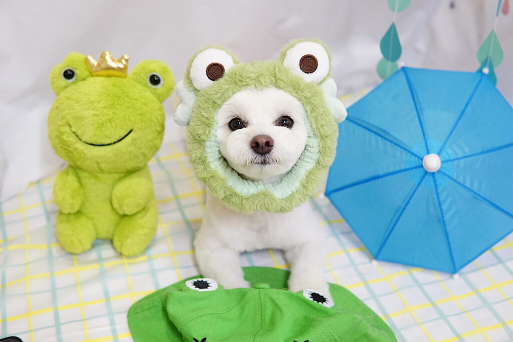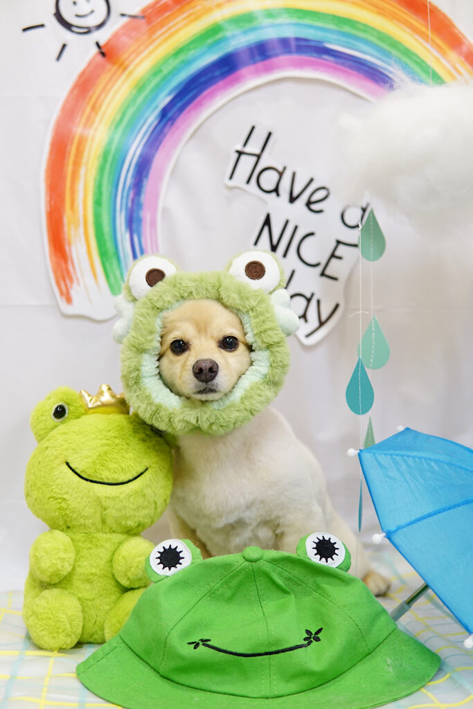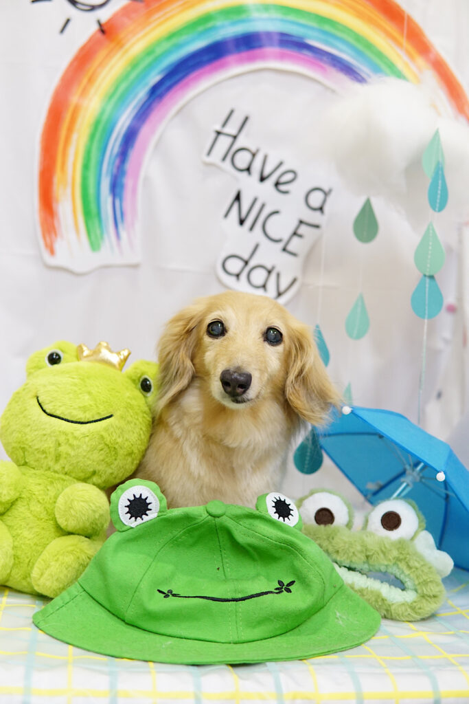 愛犬サイズの傘やカエルさん達と一緒に💗