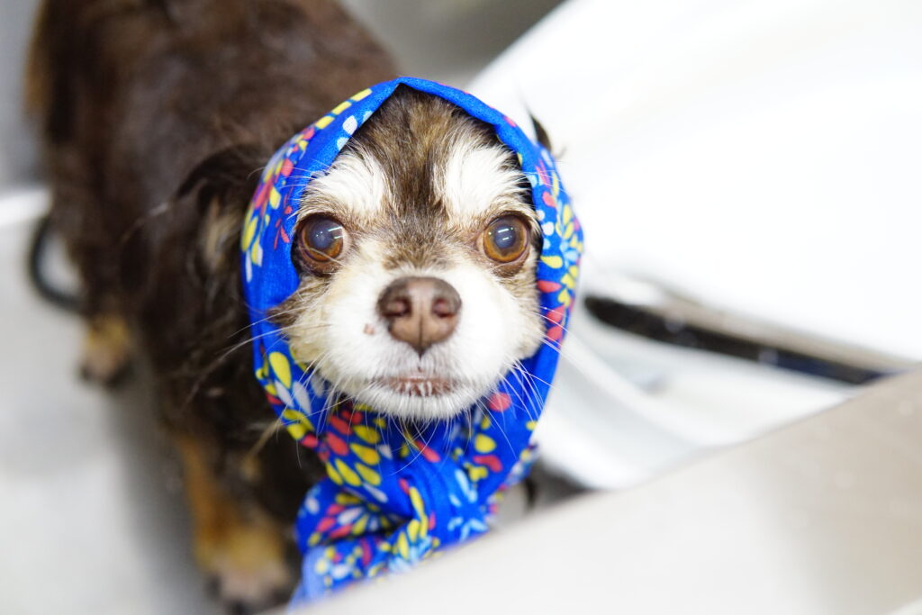 【お顔に手ぬぐい巻かれちゃってもいい子に付き合ってくれます☺️🐶仁くん】