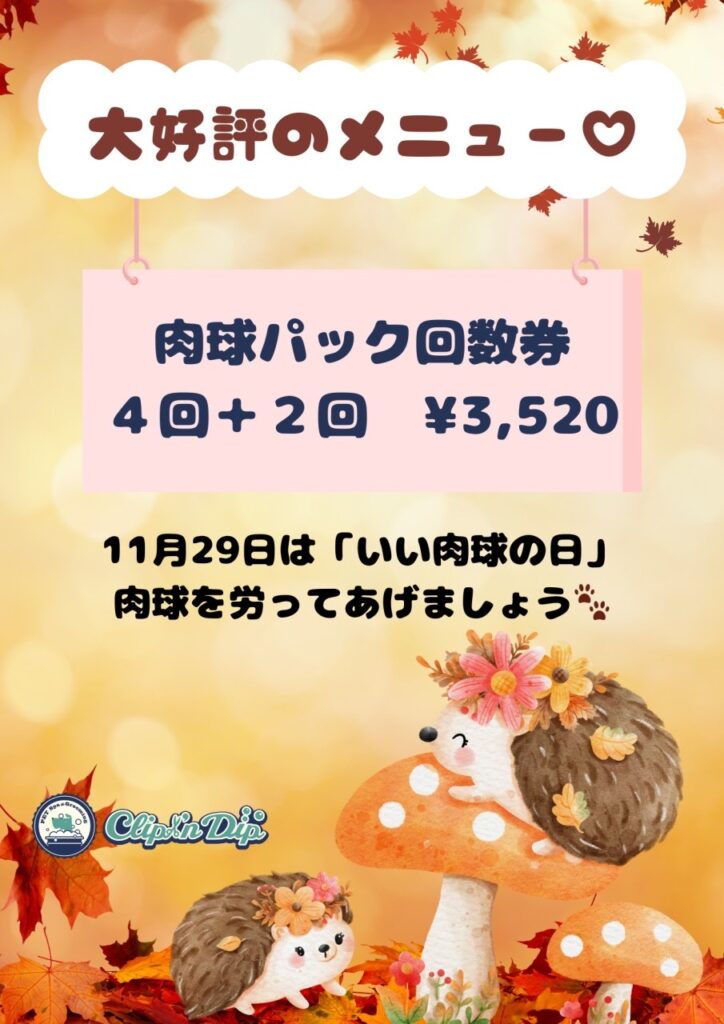 🐾肉球パック4回券がプラス2回の6回分に🐾