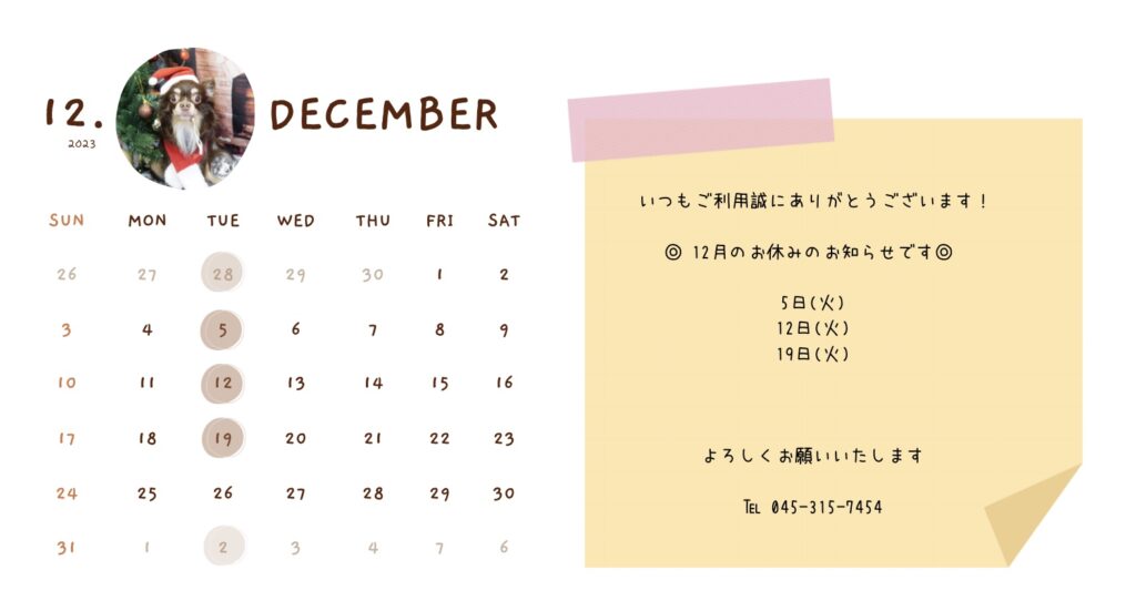 年始は1月1日〜1月3日までペットホテルのみの営業となります💡
