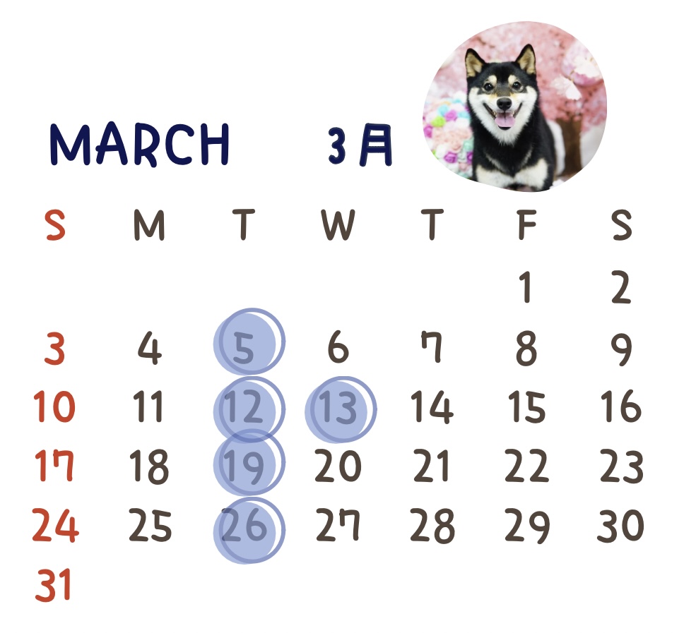 3月12日、13日、26日はお泊まりの受け渡しと宿泊ができなくなっております。