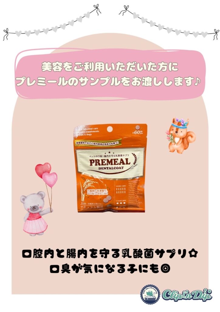 今月は美容をご利用いただいた方にプレミールのサンプルをお渡しいたします!
